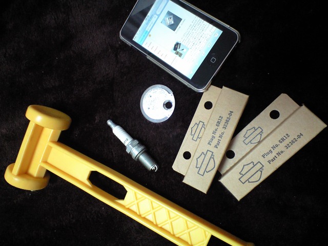 ノロジーのプラグコードを使っている場合は、ギャップの適正値は0.035inchだと購入したショップから教えてもらいましたで、ゲージで測定しながらキャンプ道具におまけで付いてきたプラハンマーでコンコンと調整しました。
